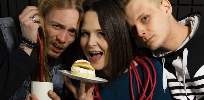 Radio Trombitin musiikkiohjelmassa pohditaan pääseekö ulkomaantoimittaja Korhonen kotiin Espanjasta Boeing 737 -lentokoneella. Juontajat: Lauri Uuspelto & Salli Syrjänen Kuva: Heidi Väisänen